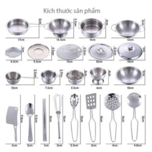 (Kích thước của Bộ đồ chơi nấu ăn inox 40 món)
